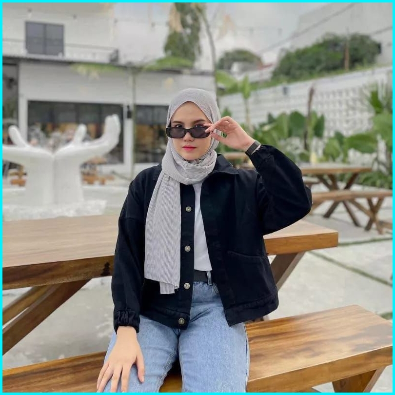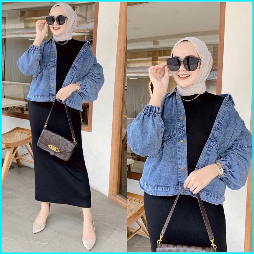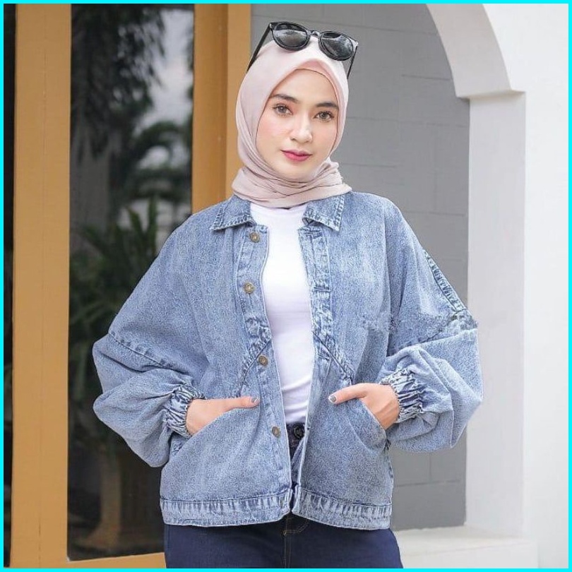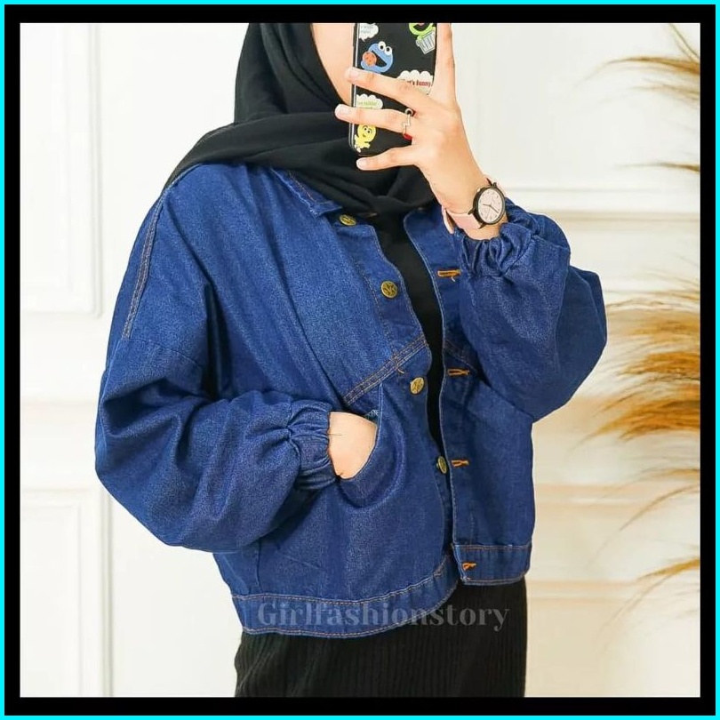 Jaket Denim Jeans Oversize Vintage Wanita Jacket Jins Oversize Kekinian Jaket Vintage Lengan Balon Crop Jeans Cewek Terb