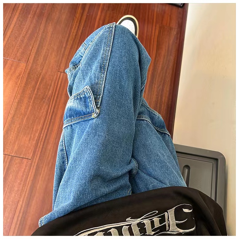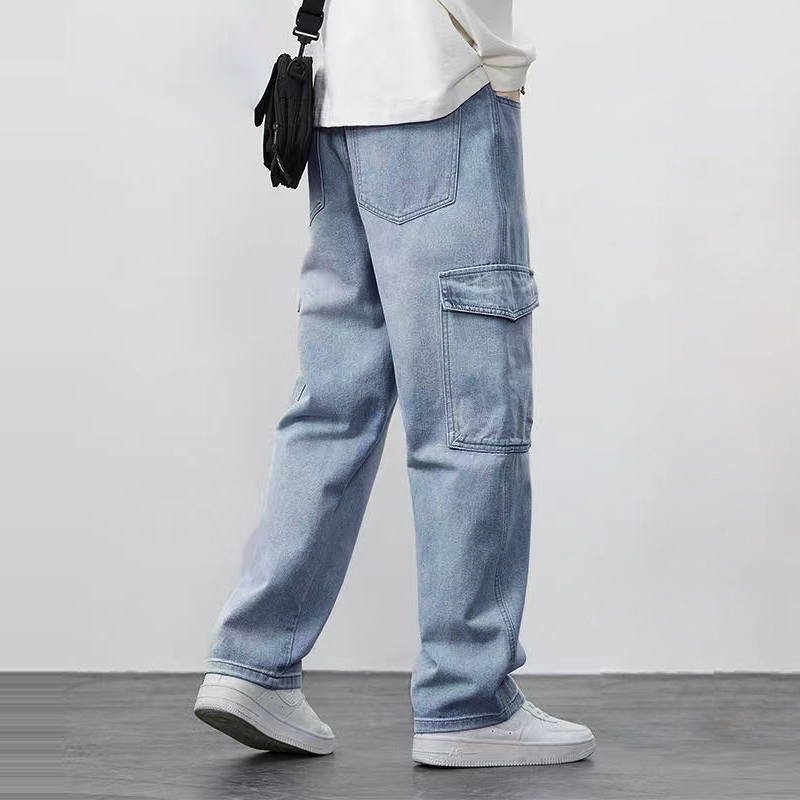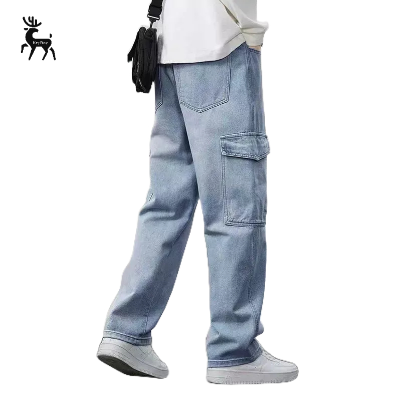 KeyBoy Celana Cargo jeans pria panjang cowok Korean style baggy pants kargo celana denim dewasa casual 2025