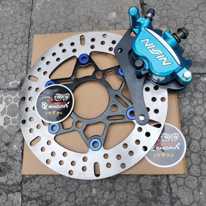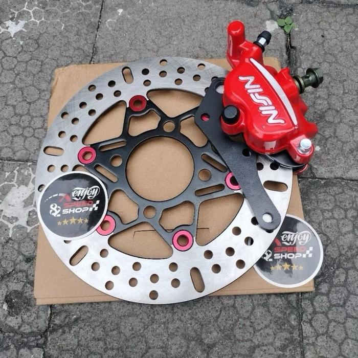 PAKET BREKET / BRACKET PLAT BESI PLUS KALIPER NISSIN SAMURAI DISC 220 MOTOR BEAT SCOPY VARIO LUBANG 4 - KALIPER HITAM+BR