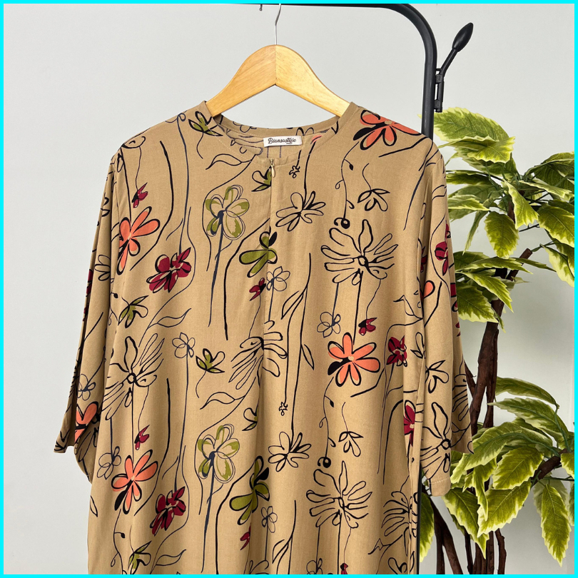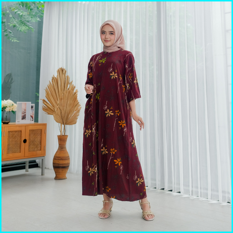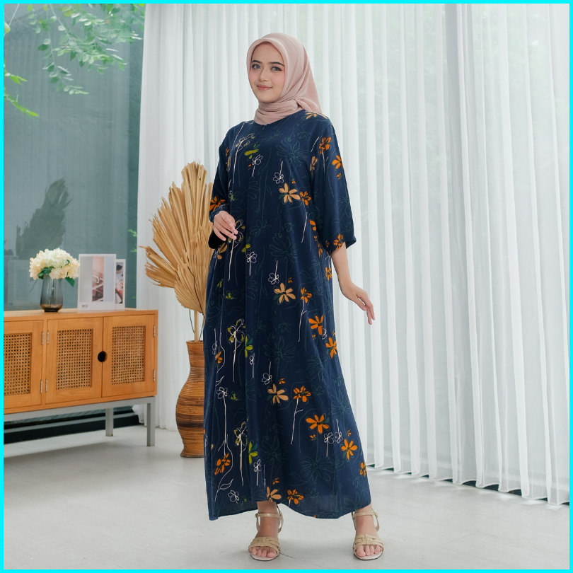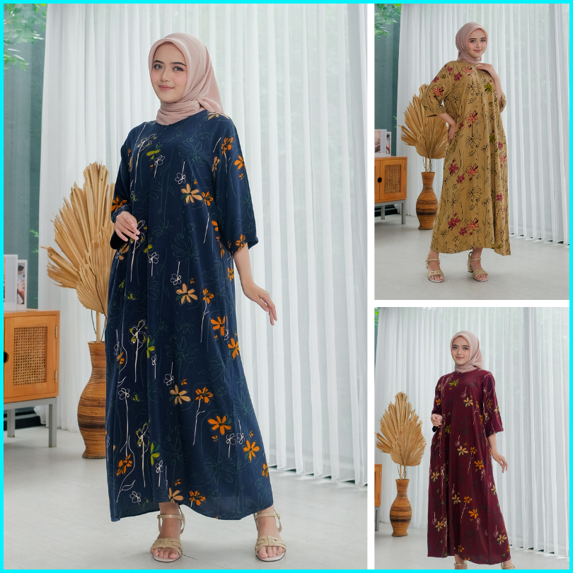 Dress Daster Jasmine Rayon Viscose Motif Bunga Kekinian Terbaru Tangan 3 4 By Biansastyle