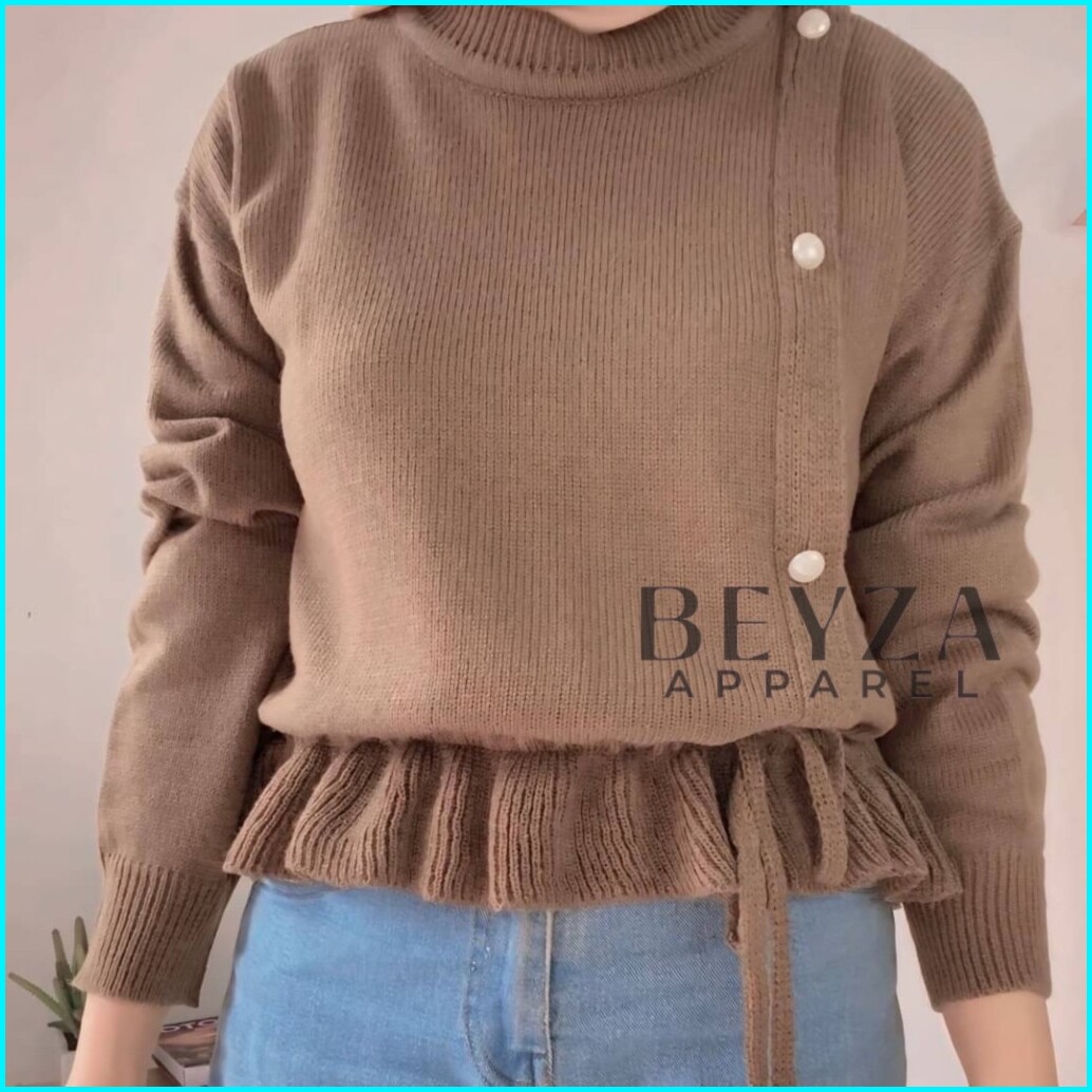 Beyza Apparel Jenny Blouse Atasan Rajut Korean Style Lengan Panjang Motif Polos