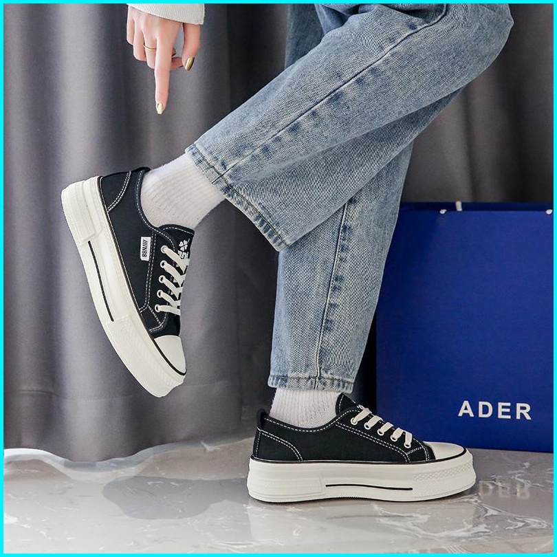 Sneakers Wanita Canvas Sepatu Sekolah Bertali Fashion Kekinian Import Korea Style 9178