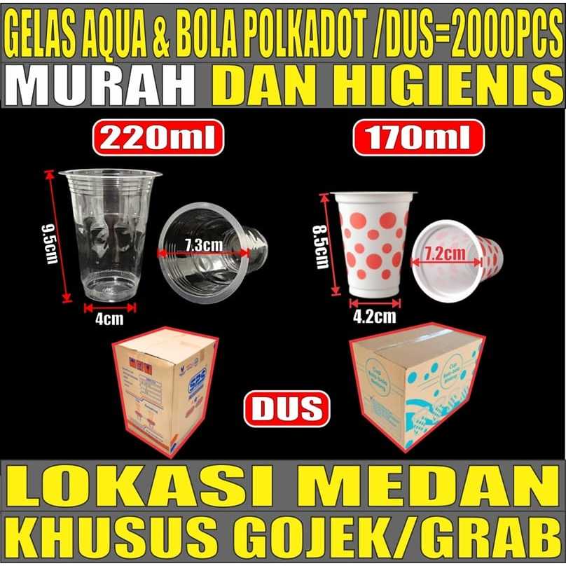 Gelas Bola Polkadot Tebal 3gr | Aqua uk 220ml u Kopi Teh Eskrim Dus Medan