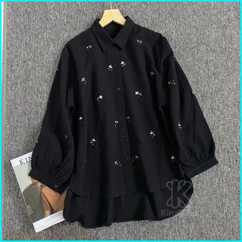 Kemeja Wanita Pololinen Bordir Bunga - Atasan Casual Lengan Panjang Adem Busui Friendly