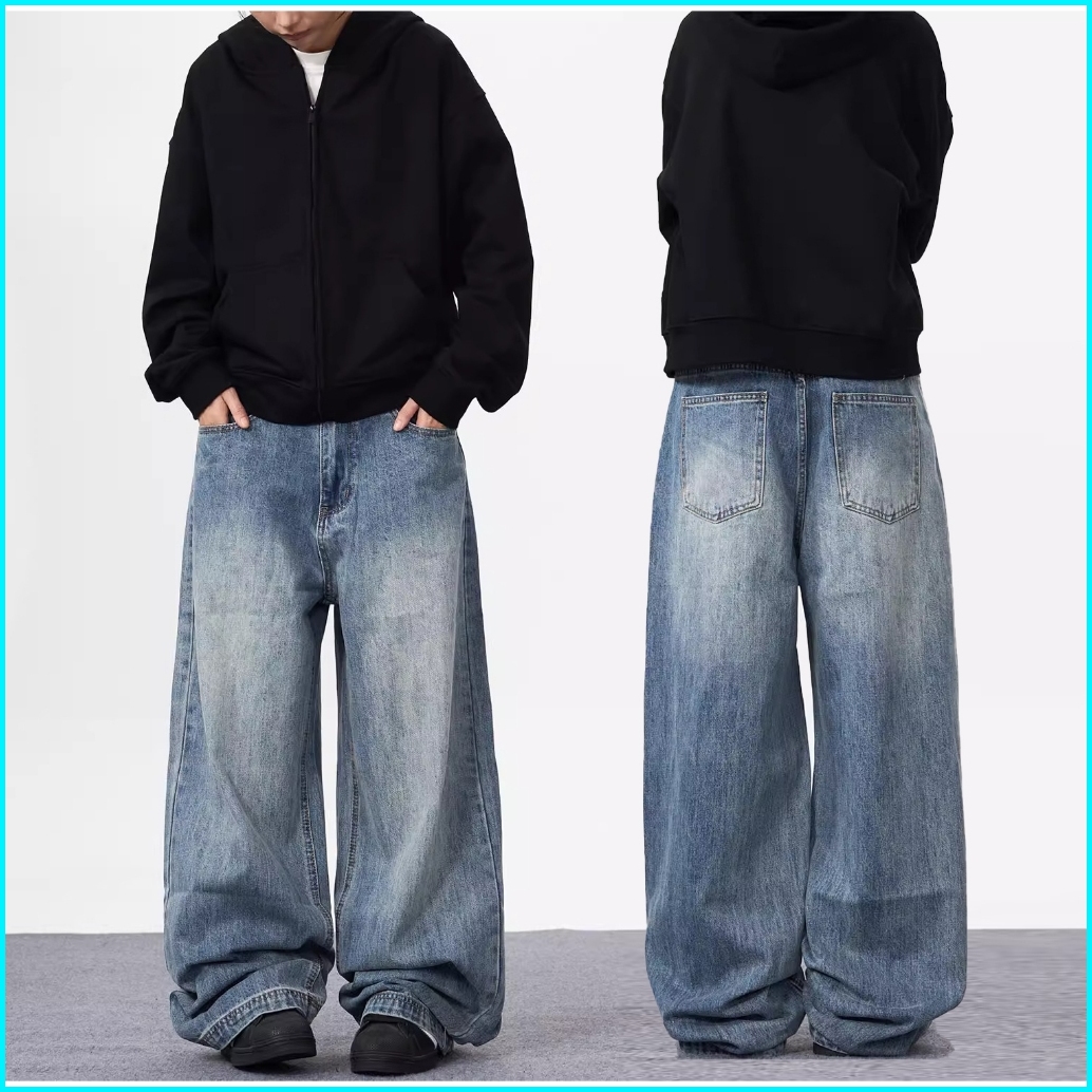 Celana Jeans Pria Baggy Jumbo Cowok Straight Skena Celana Panjang Laki Laki Korean Style Oversize Casual Vintage Dewasa