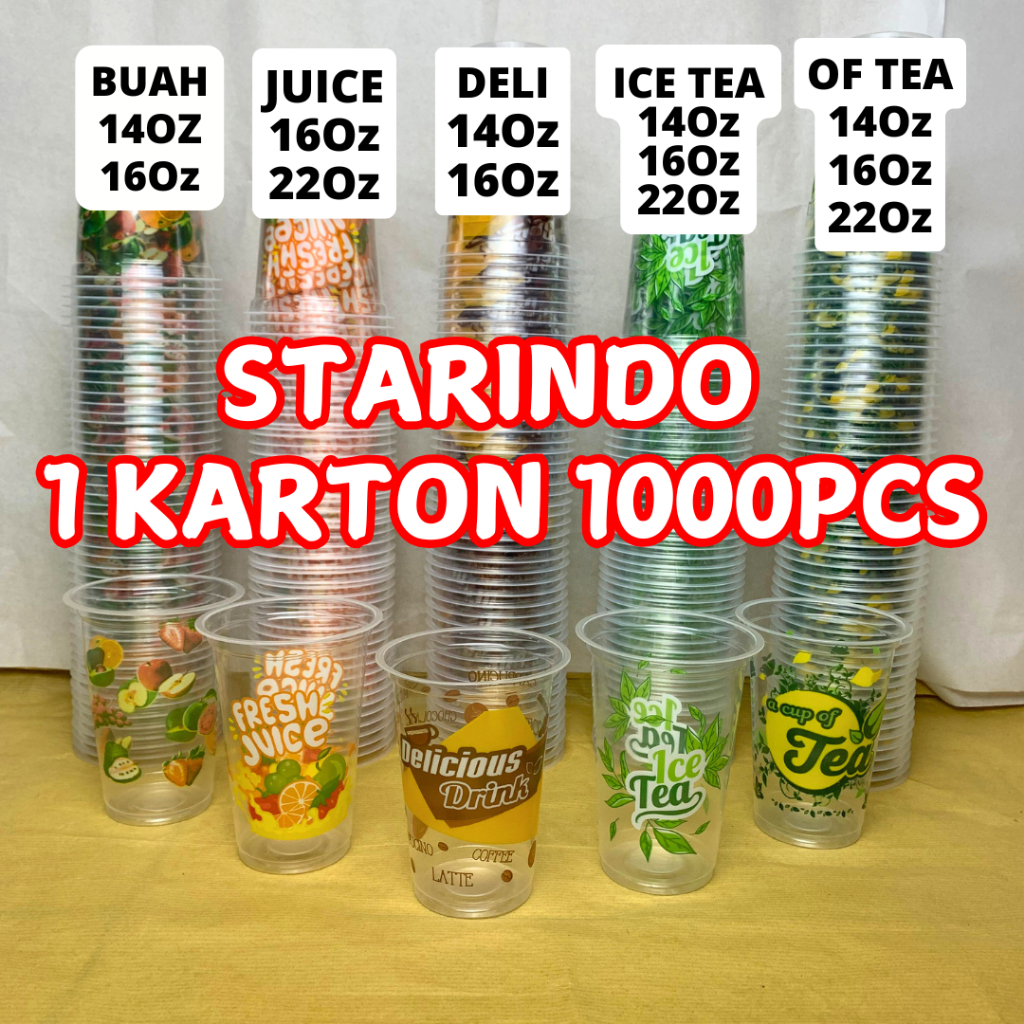 GELAS ES TEH MANIS 1000pcs, GELAS ES TEA,GELAS MEREK STARINDO MOTIF TEA 12oz,14oz,16oz,22oz ICE TEA