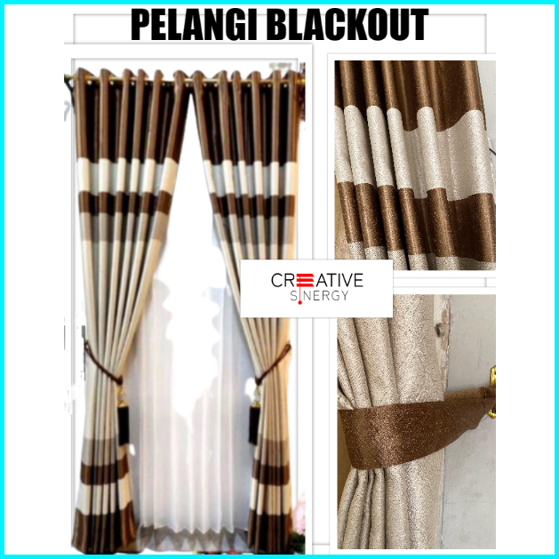 Gorden Jendela Pintu Panjang Pendek Blackout Tebal Import Motif Minimalis Pelangi 6 Gelombang 12ring