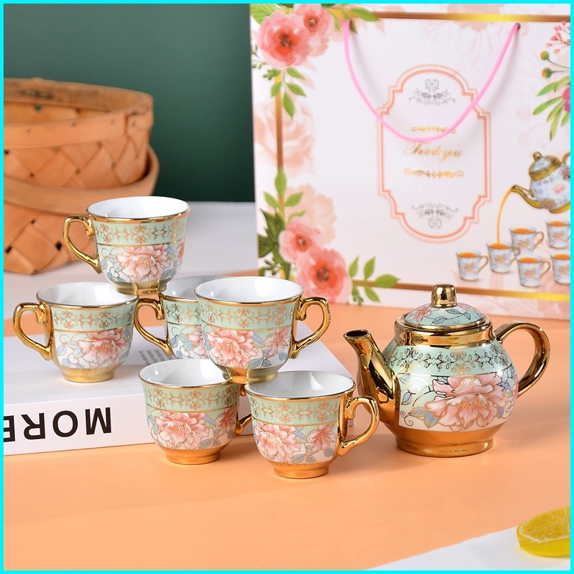 Reseller Welcome - 5345 Set Teko Cangkir Piring Keramik European Classic Style Teapot Motif Bunga Rose Teapot Cup Porcel