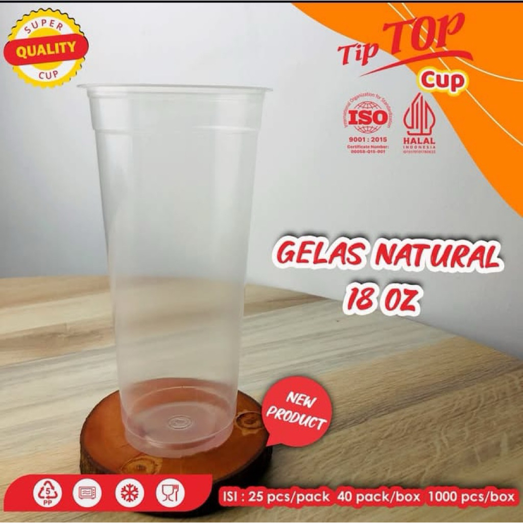 (1 DUS ) Gelas Plastik TipTop 18oz Slim Datar isi 1000pcs 8.5gram / Gelas Datar Bening 18oz Slim