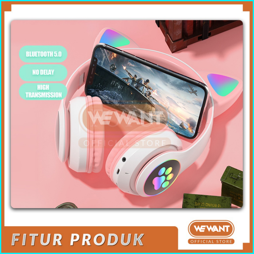 Wewant Headset Kucing Led Tws Bluetooth 5.0 Extra Bass