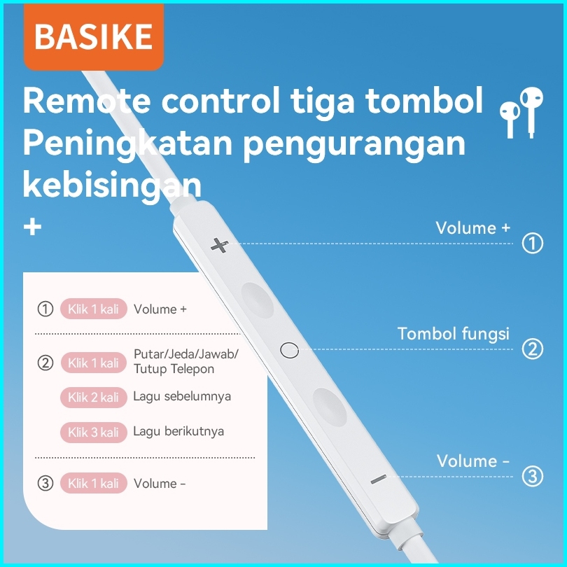 Hot Basike Headset Kabel 3.5 Mm Earphone Gaming Bass Musik In Ear For Xiaomi Android Asli