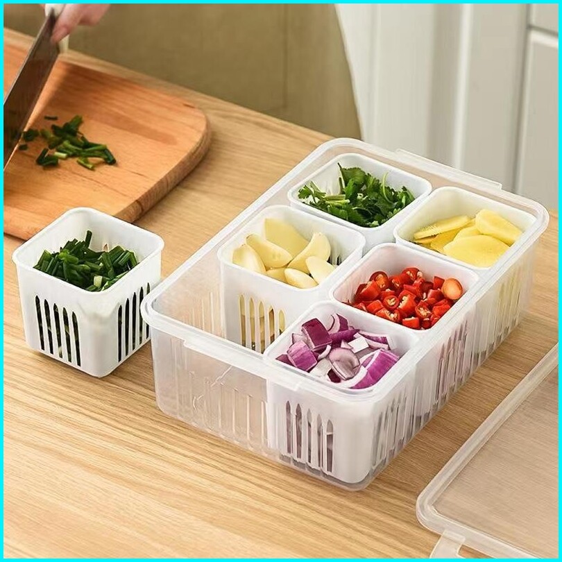 6 Sekat Kotak Penyimpanan Bumbu Dapur Wadah Cabai Bawang Kotak Bumbu Dapur Dengan Tirisan Dan Sekat Kotak Saringan Wadah
