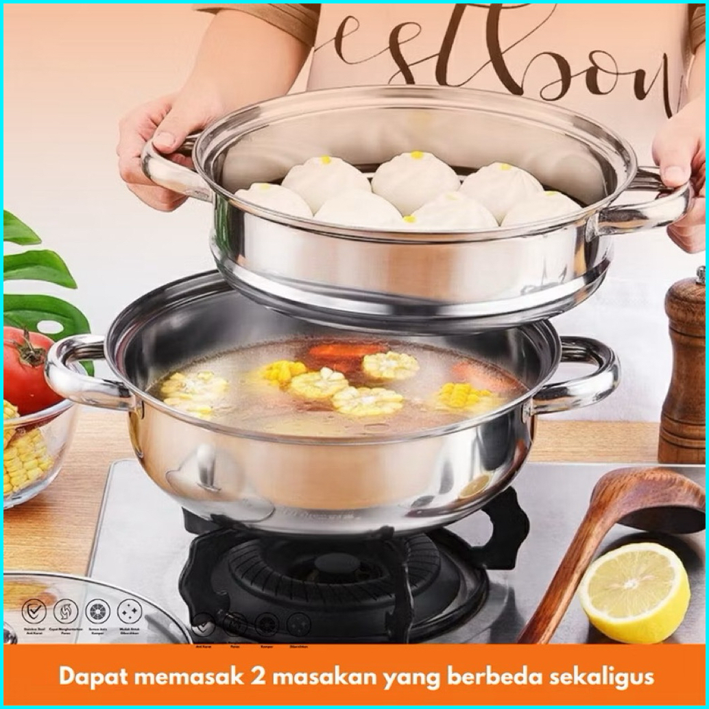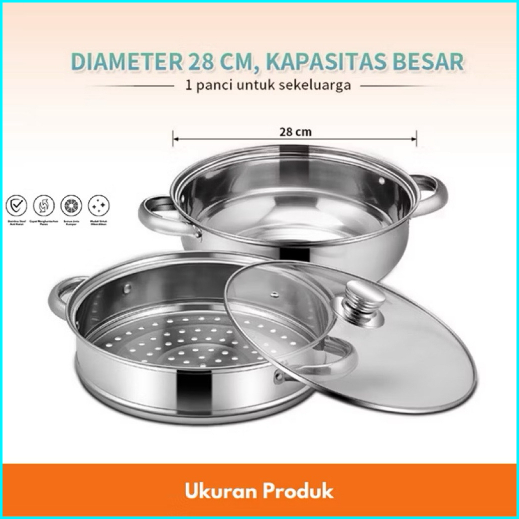 Panci Kukus Stainless 2 Susun Anti Lengket 28cm