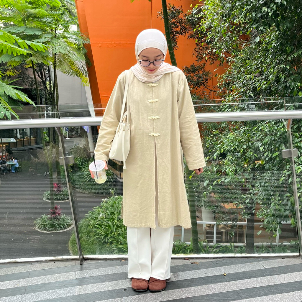 Buymau.fa - Alenia Tunik / Tunik Wanita / Long Tunik / Pakaian Wanita / Atasan Wanita / Linen / kancing sanghai