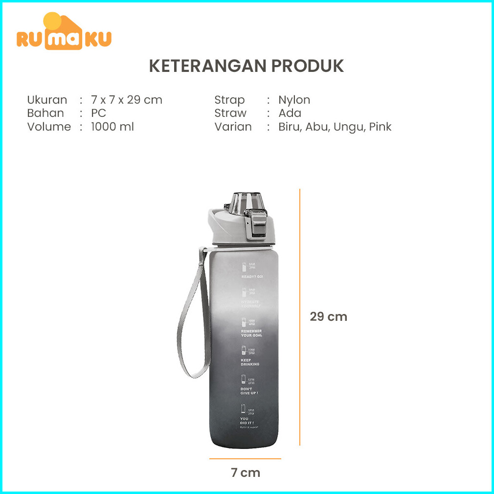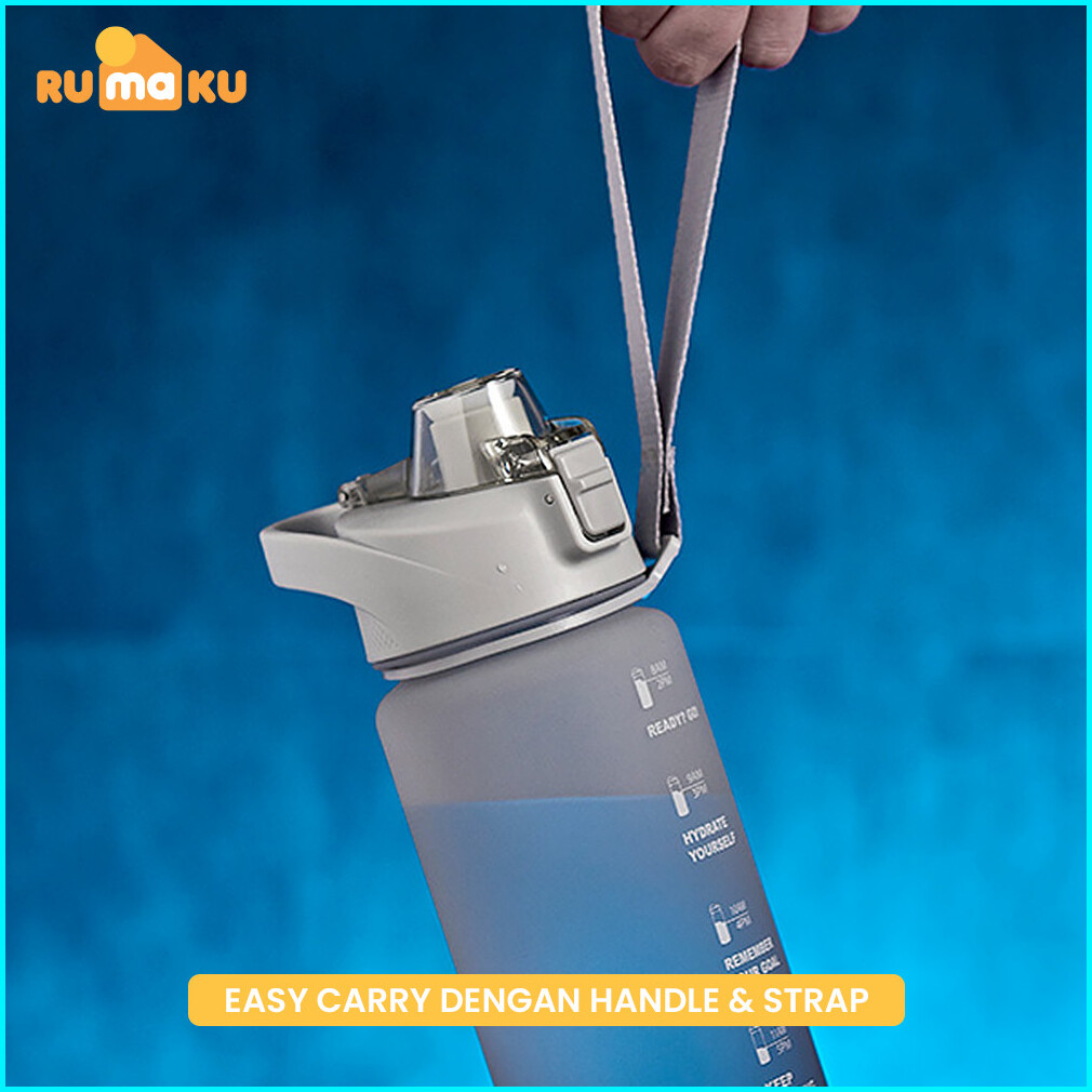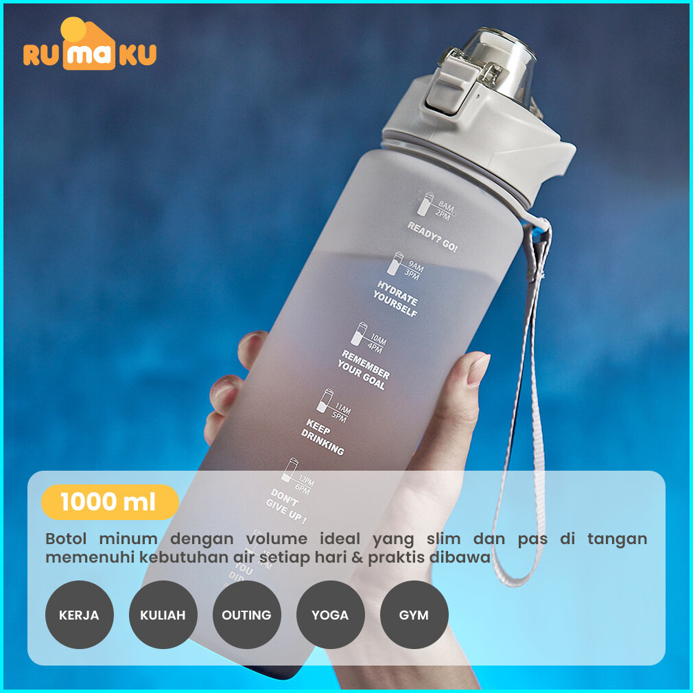 Rumaku Botol Minum Motivasi Olahraga 1000 Ml Botol Air Minum Sport Dengan Sedotan Dan Tanda Anti Tumpah Premium Quality