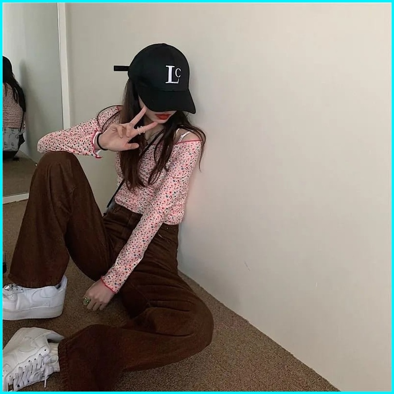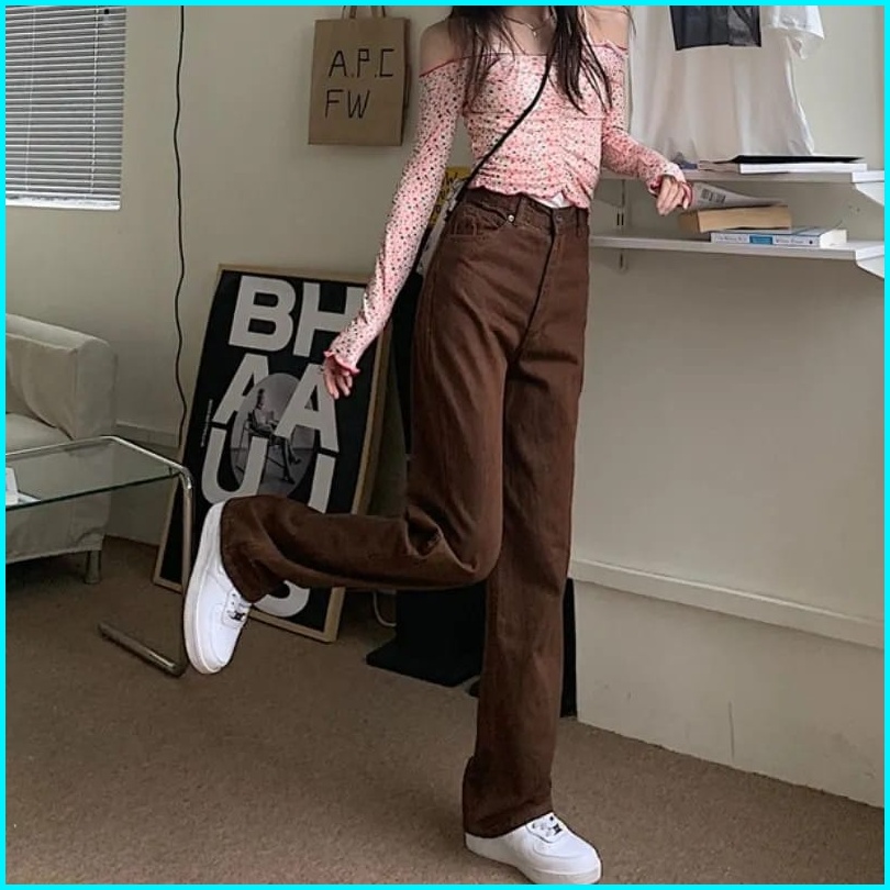 Highwaist Kulot Jeans Wanita Loose Coklat