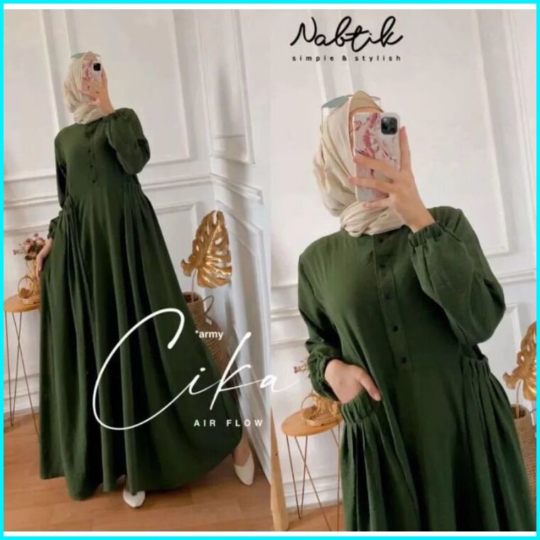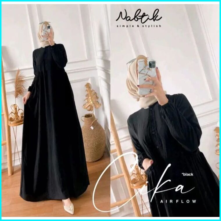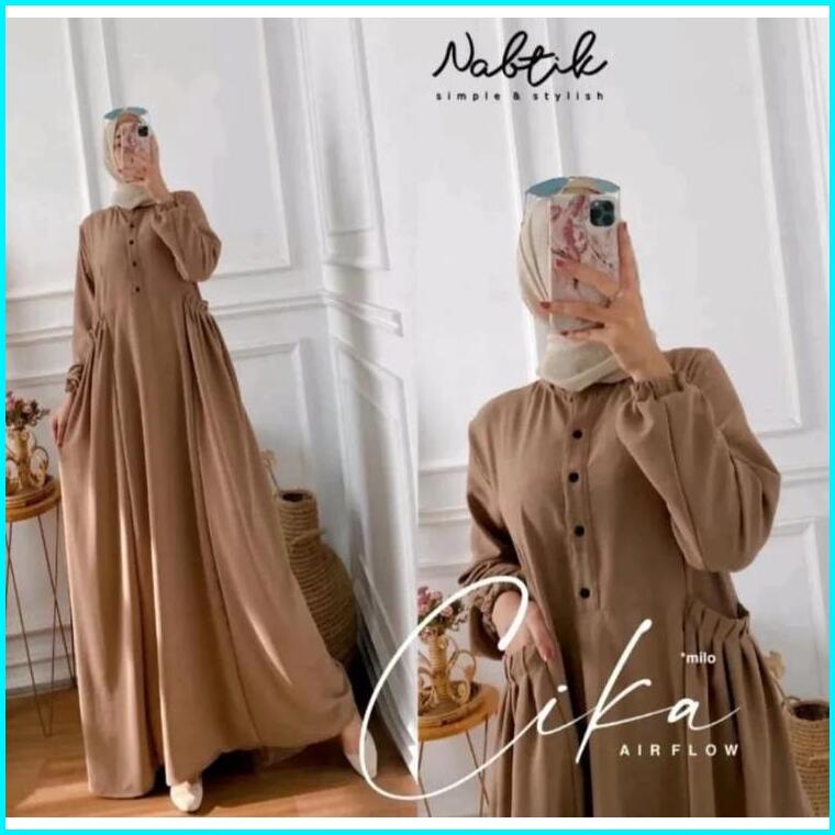 Others Cika Maxi Dress Bahan Crinkle Air Flow Gamis Wanita Muslim Elegan Gamis Jumbo Terbaru Gamis Modern