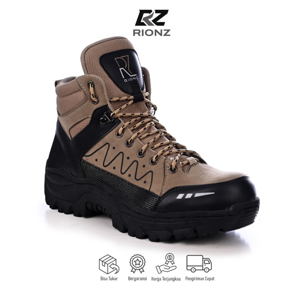 Rionz Rodri Cream Grey Sepatu Boots Pria Safety Tracking Outdor Touring