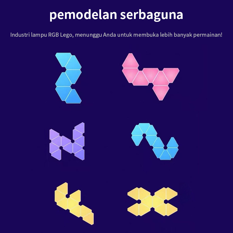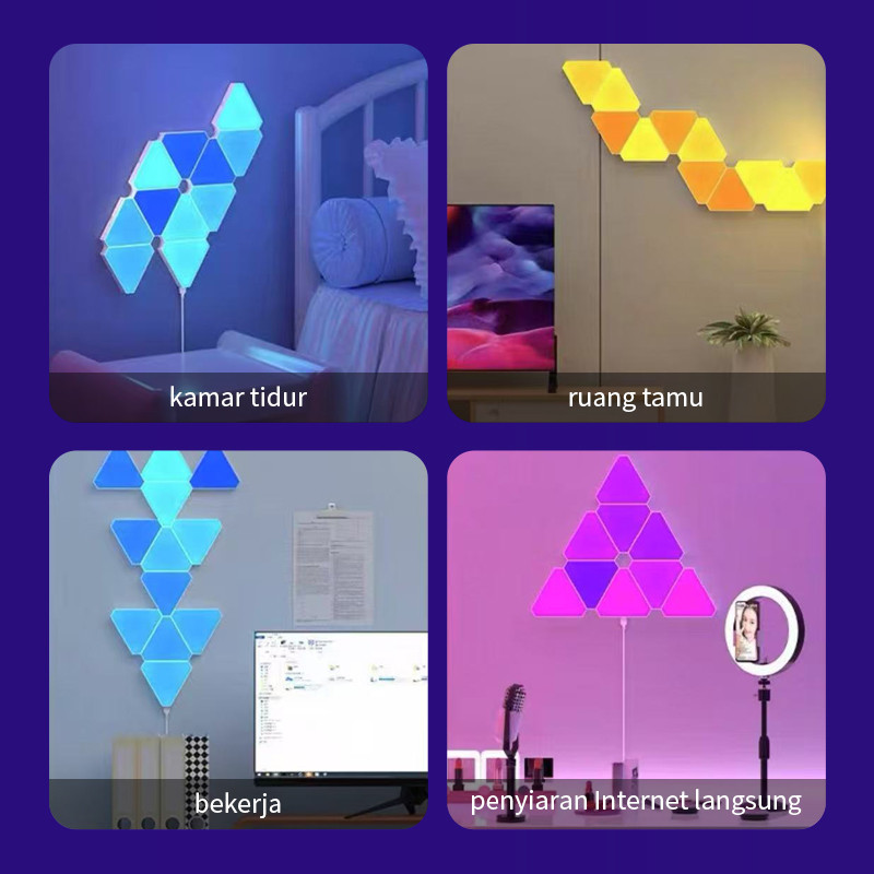 Lampu Gahaya Ambient Gaming Segitiga Splicing 15Pcs Led Remote Control Atmosfer Panel Lampu Ganjil Berwarna-Warni Dan Mu