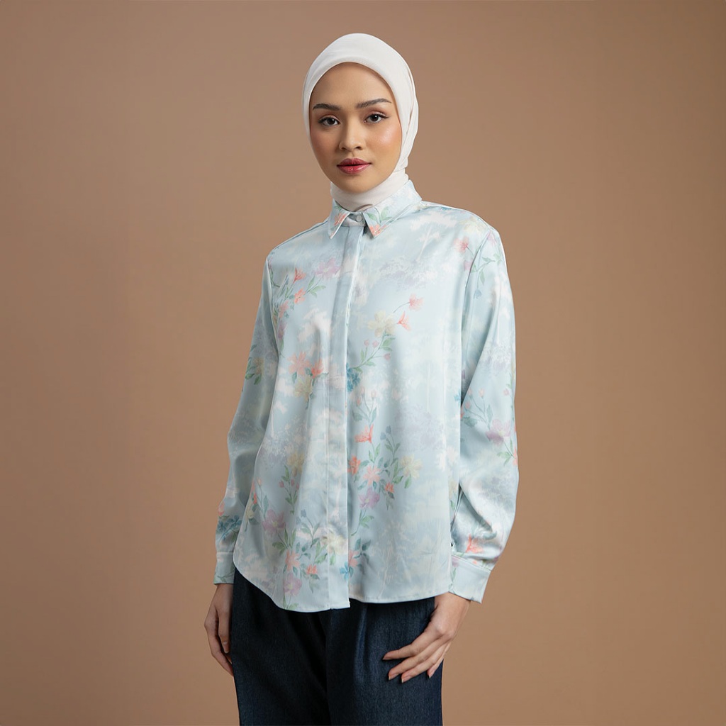 HijabChic Athena Top - Kemeja Motif Bunga Elegan