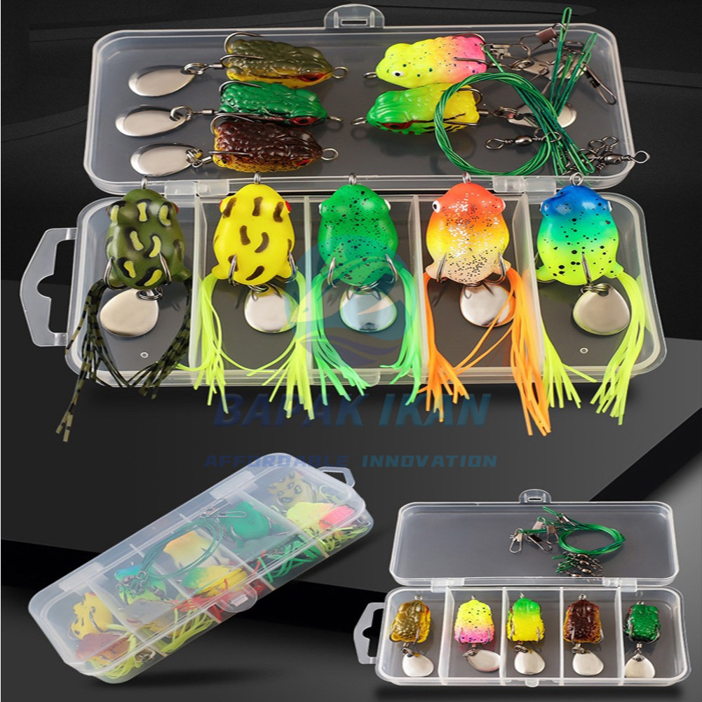 【Setelan】5pcs/10pcs Set Katak Lembut 3G/4G, Umpan Pancing Sangat Fleksibel dengan 2 Buah Kait Tajam Katak Karet Lembut-B
