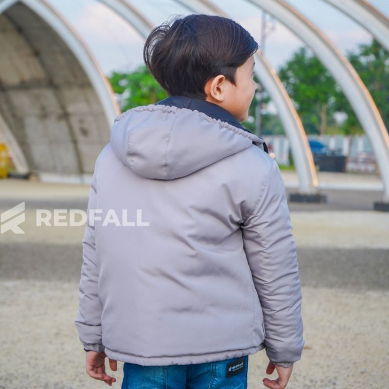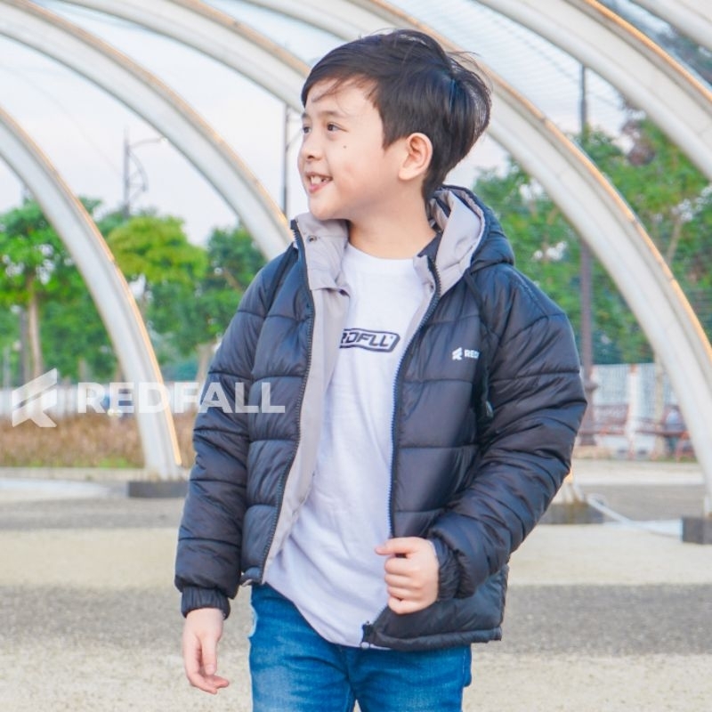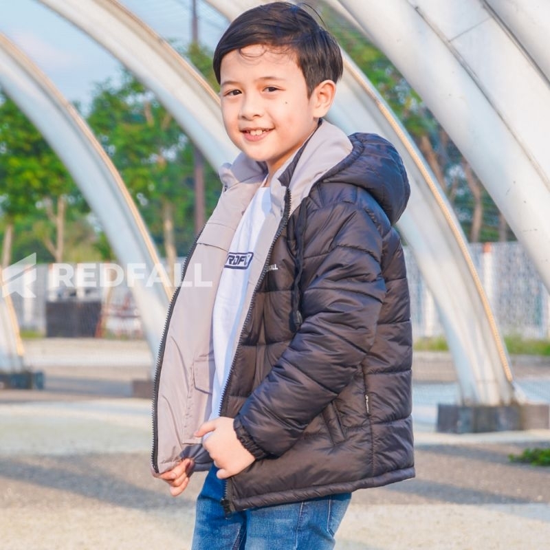 Jaket Tebal Anak Puffer Premium Bolak Balik Usia 3-12 Tahun - Hitam X Silver