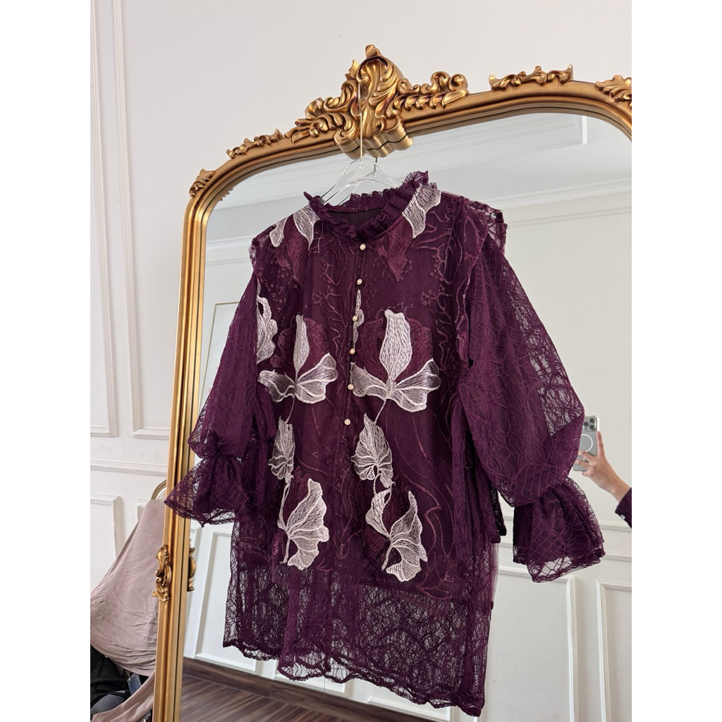 SELINA blouse chantily silk oragnza garden bordir