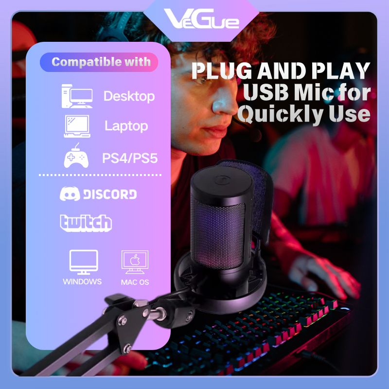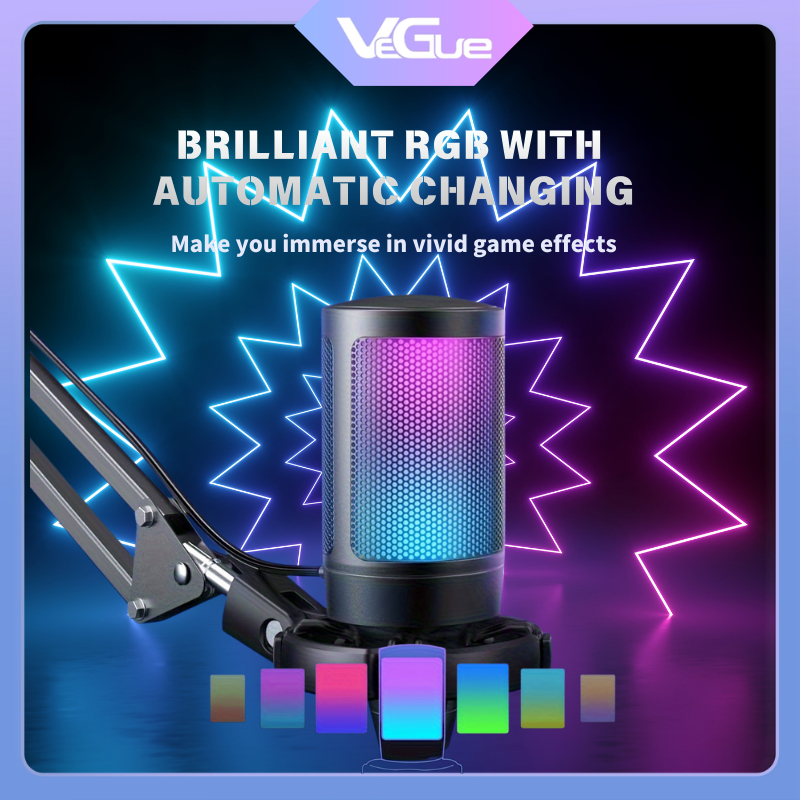 Mikrofon Perekaman Rgb Game Dengan Dudukan Lengan Yang Dapat Disesuaikan Mikrofon Kondensor Desktop Usb