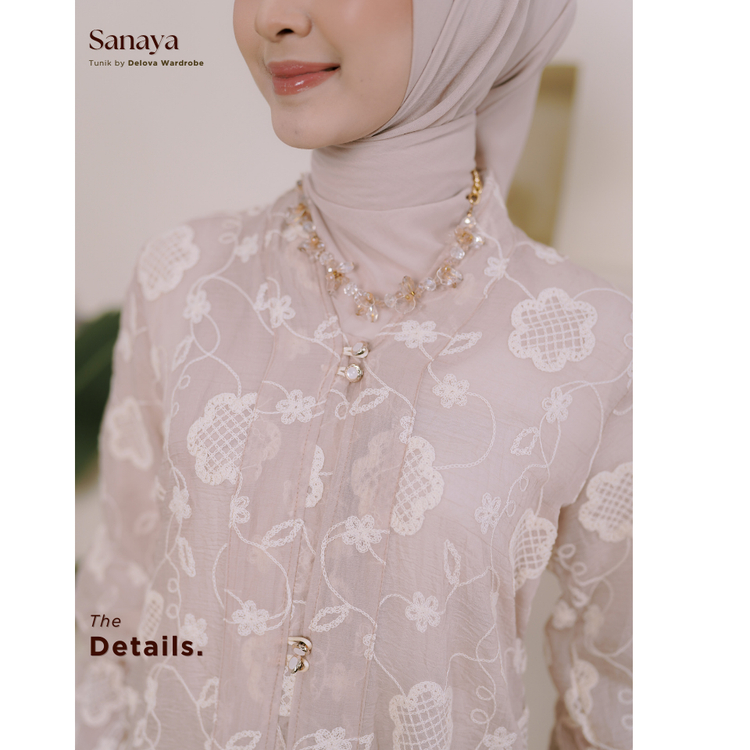 Delova Wardrobe - SANAYA Tunik Kurung Melayu Long Outer Coquette Raya Katbor Katun Bordir Cutton Tencel Embroidery Peper Silk Tile Brukat Kondangan Lebaran