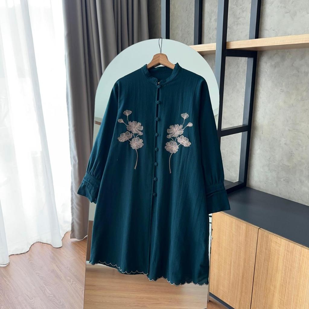 HANAKO 613 | Tunik Linen Bordir Maroon Navy