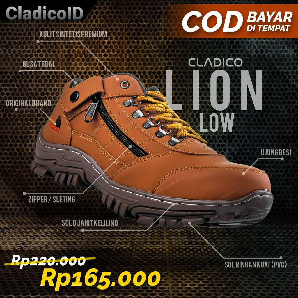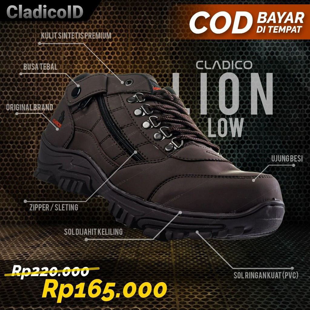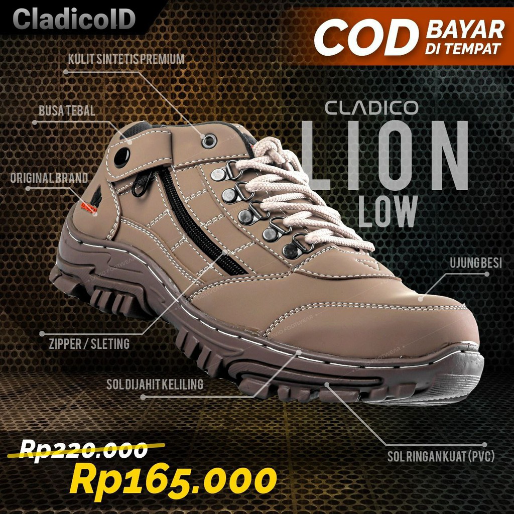 Sepatu Boots Pria Safety Ujung Besi Pendek Kerja Lapangan Proyek Gunung Hiking Sefty Cladico Lionlow