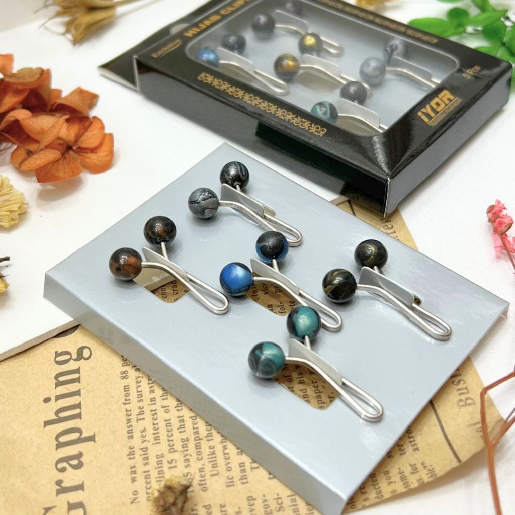 Best Seller Paket Klip Hijab Isi 5Pcs Original Made In Turkey Oren Turkey By Iyor - Pearly Hitam Putih Bulat Klip Hijab