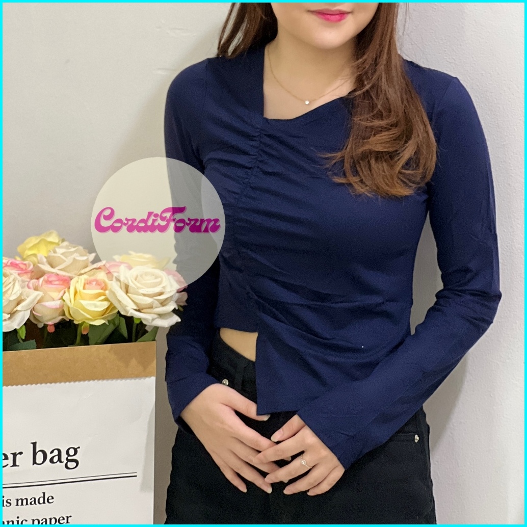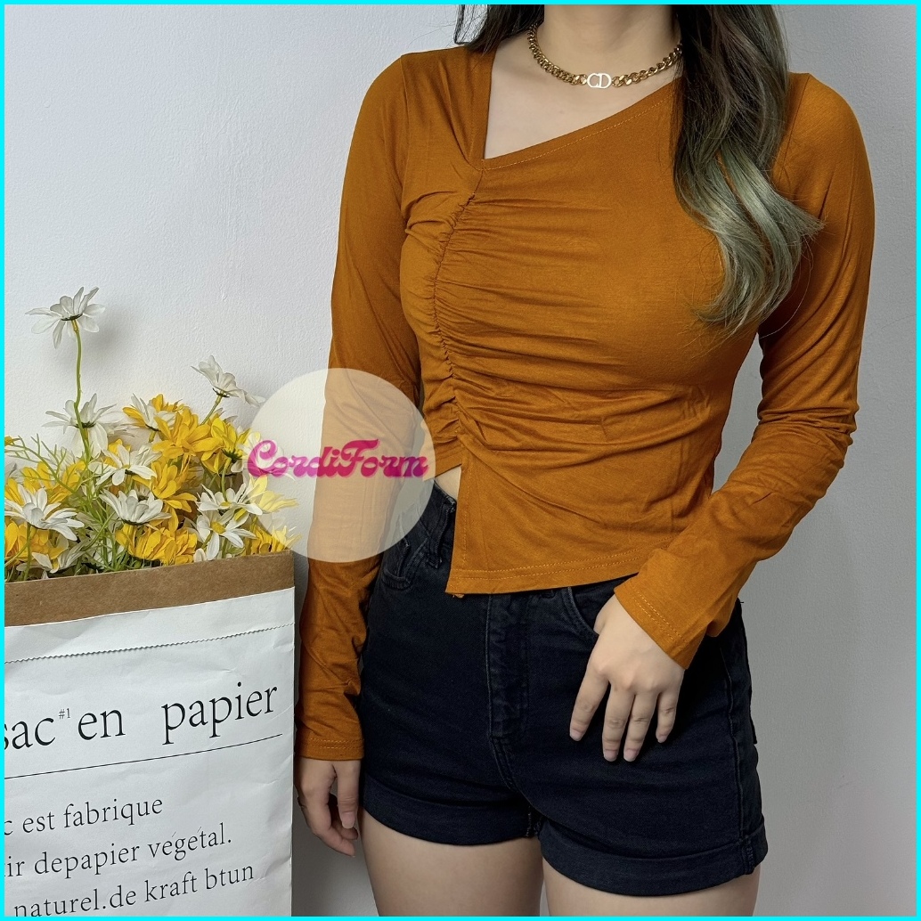 Atasan Crop Top Lengan Panjang Wanita Crop Top Wanita Kerut Wanita 36