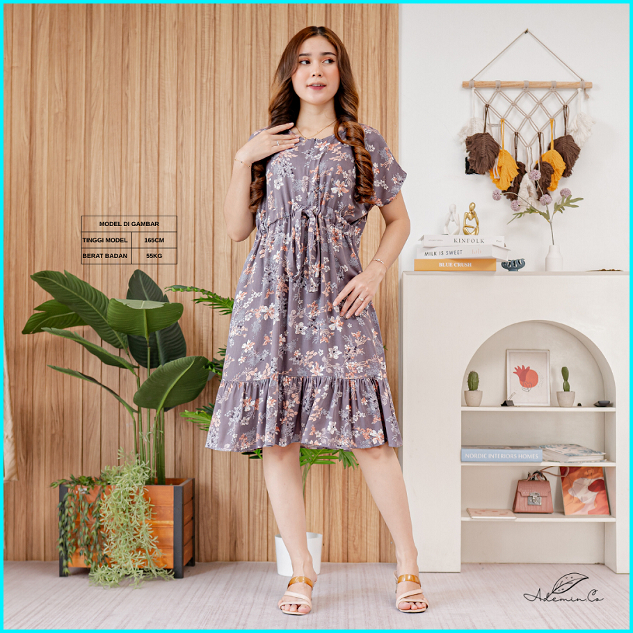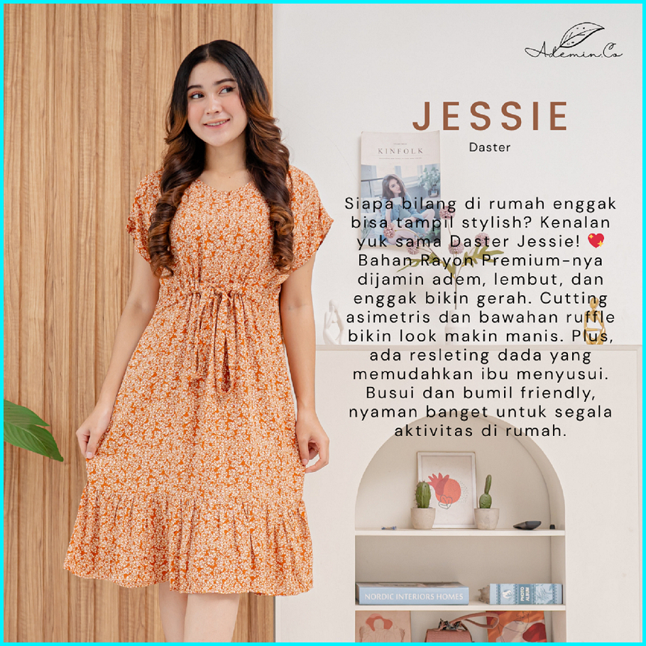 Ademinco Jessie Daster Serut Ruffle Rayon Reactive Daster Kekinian Adem Busui Bumil Friendly