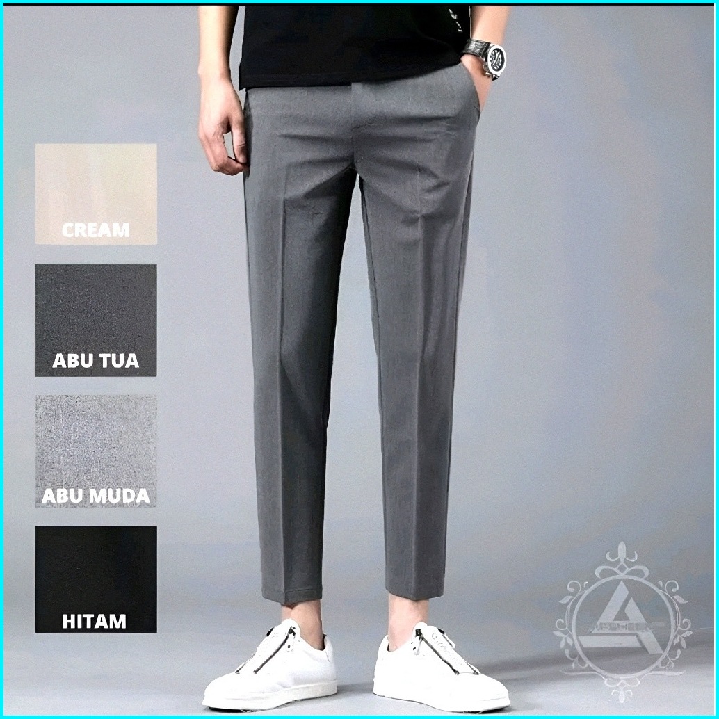 Celana Ankle Pants Panjang Pria Slim Fit Premium Basic Korean Style Bahan Semi Woll Hitam Classic Casual Premium Kerja K