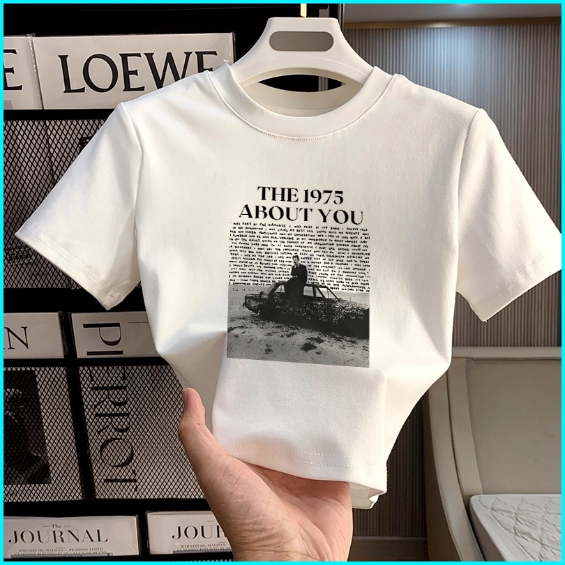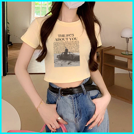006-022 Baju Pendek Wanita Crop Top Ketat Putih Polos Wanita Korea Print Street Style Baju Basic Crop Top