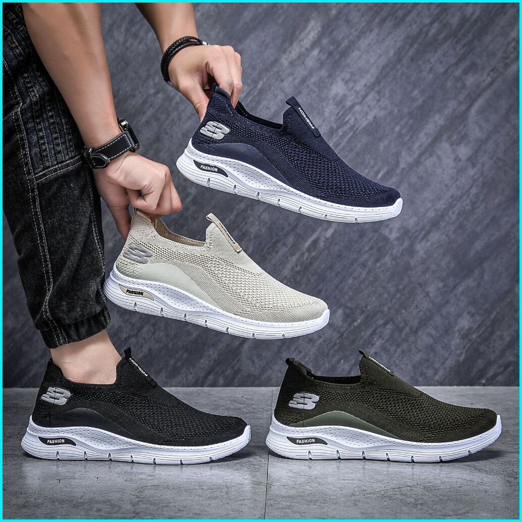 Exito Sepatu Sneakers Slip On Kanvas Rajut Pria Tanpa Tali Casual Shoes Mnov02