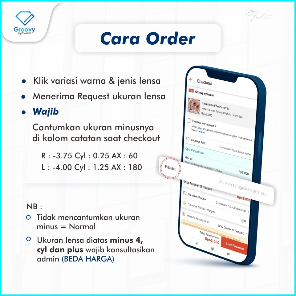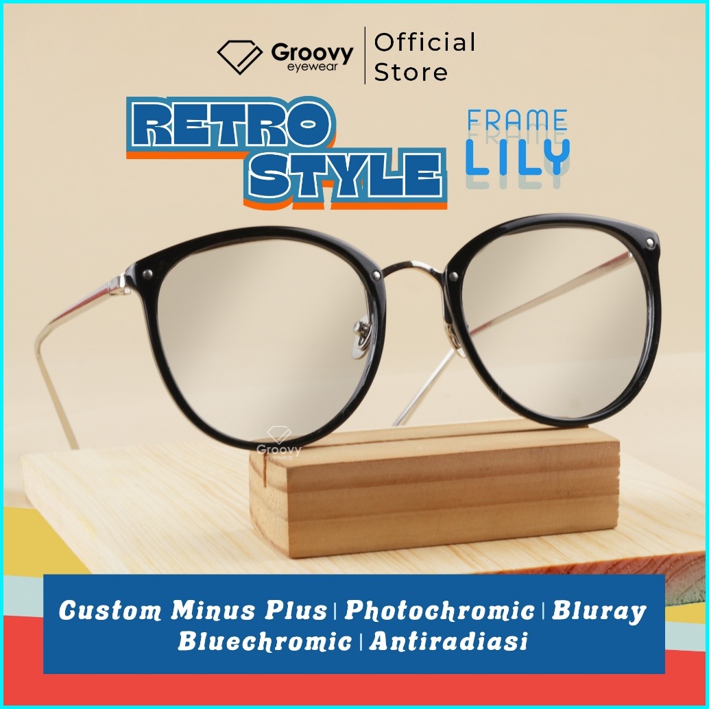 Groovy Eyewear - Kacamata Lily Lensa Minus Photocromic Antiradiasi Komputer Kacamata Baca