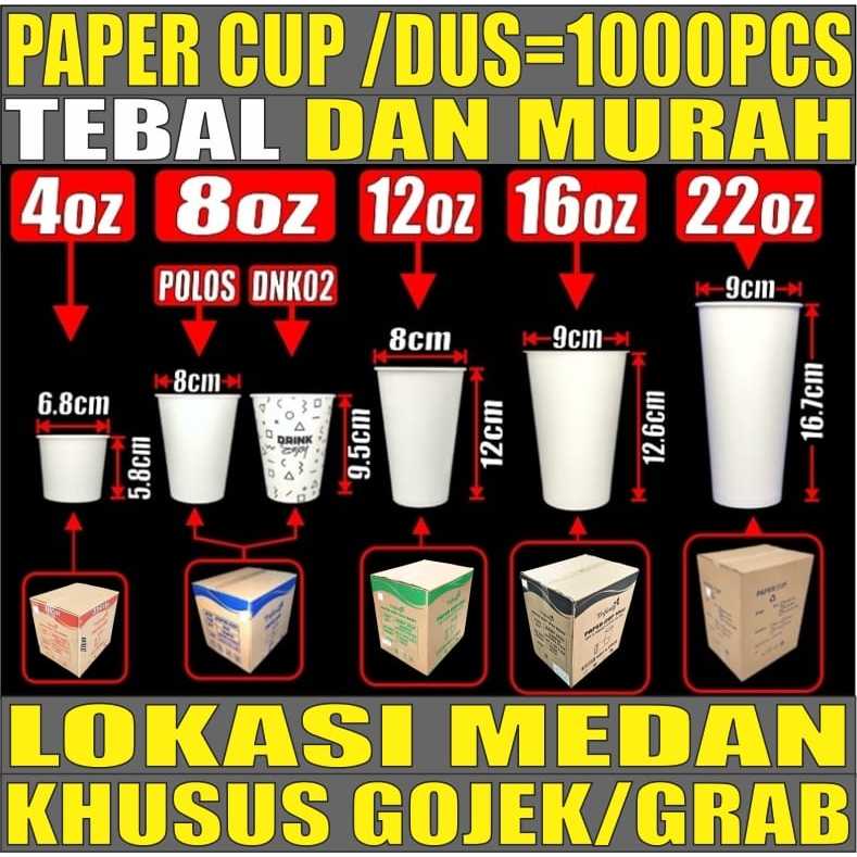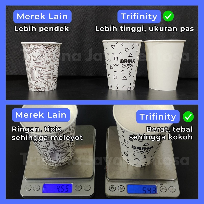 Paper Cup Tebal 4oz 120ml 8oz 240ml 12oz 360ml 16oz 480ml 22oz 660ml Hot n Cold Hanya Gelas Kertas Tahan Panas Trifinity