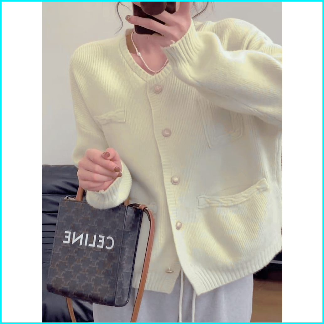 Monica Sweater Rajut Wanita Ala Korea Kardigan Rajutan Lembut Warna Solid Yang Modis Sweater Rajutan Longgar Kerah Awak