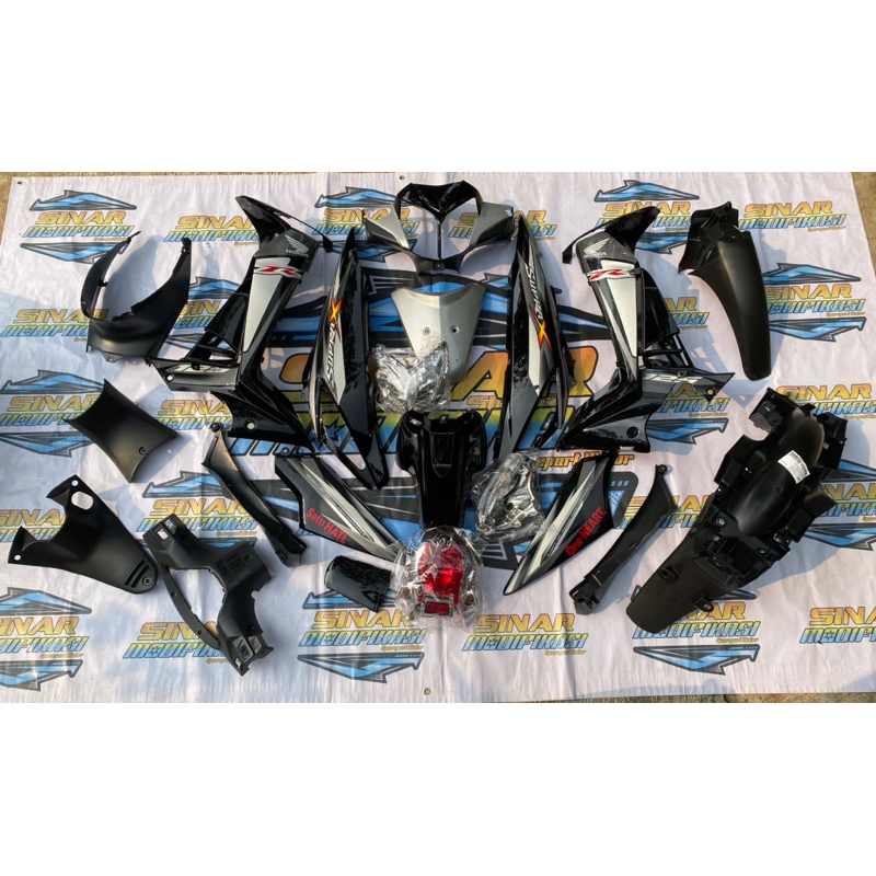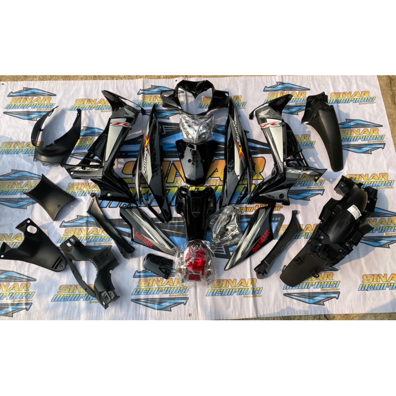 full set cover body halus dan kasar honda supra x 125 r / 125 batman 2008 2012 karburator warna hitam+striping
