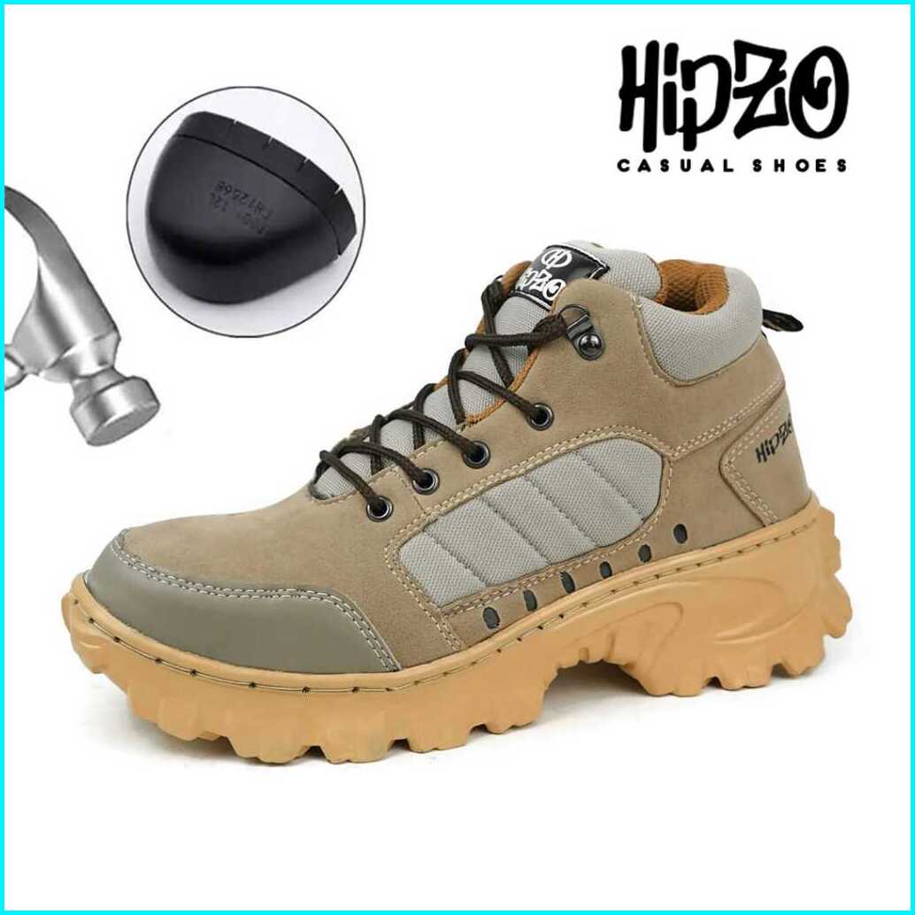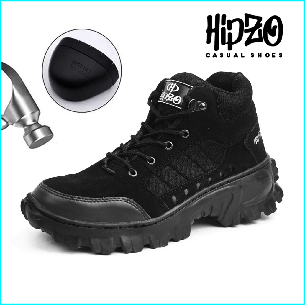 Hipzo Sepatu Safety Boots Tinggi M079 Untuk Ujung Besi Kerja Proyek Lapangan