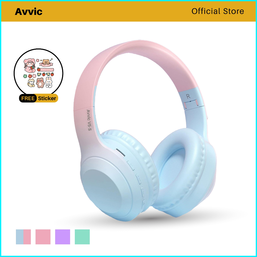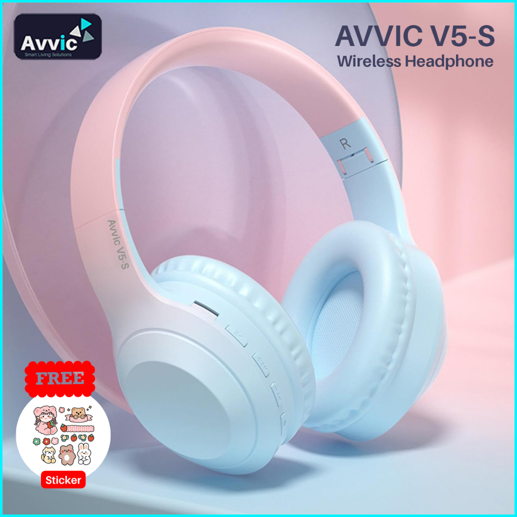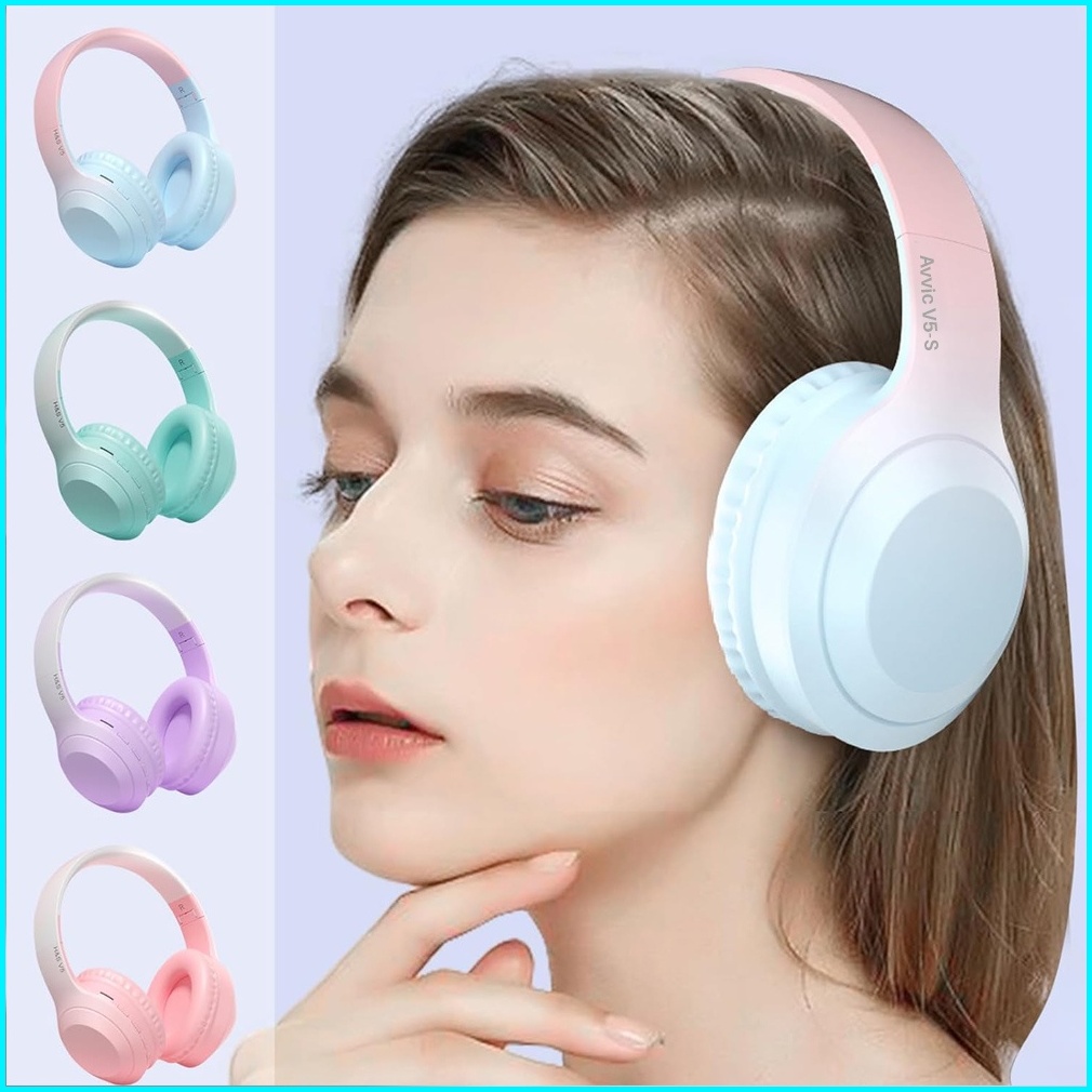 Avvic V5-s Wireless Headphone Bluetooth Gradient Color Headset Stereo Hifi Bass Hd Sound Earphone