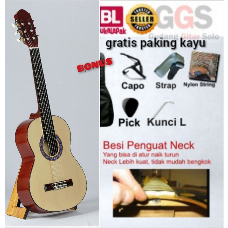 Gitar Akustik klasik yamaha 3/4 senar nilon tanem besi import custom bonus komplit senar import
