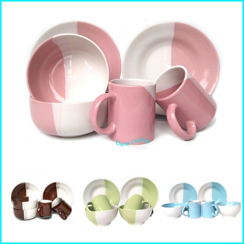 6 Pcs Dinner Set Two Tone Keramik