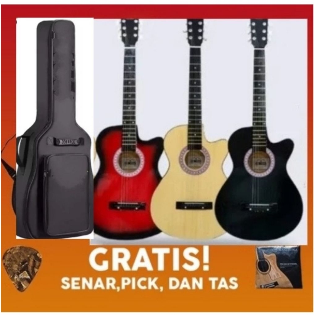 GITAR STANDAR BEGINER TANAM BESI SENAR 6 PACKING KAYU - GARANSI PENGIRIMAN - PACKING AMAN
