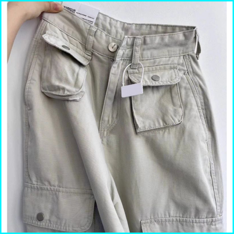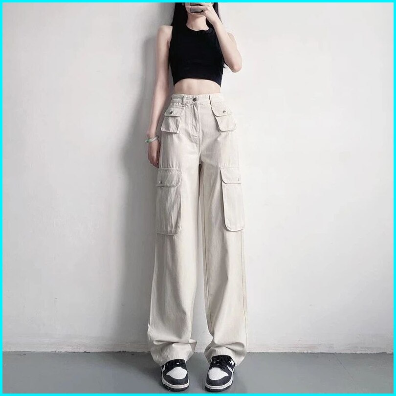 Cargo Jeans Highwaist - Cargo Saku Depan Timbul - Cargo Lulu - Cargo Denim Pasir Putih - Cealana Loose Cargo Wanita - Ce