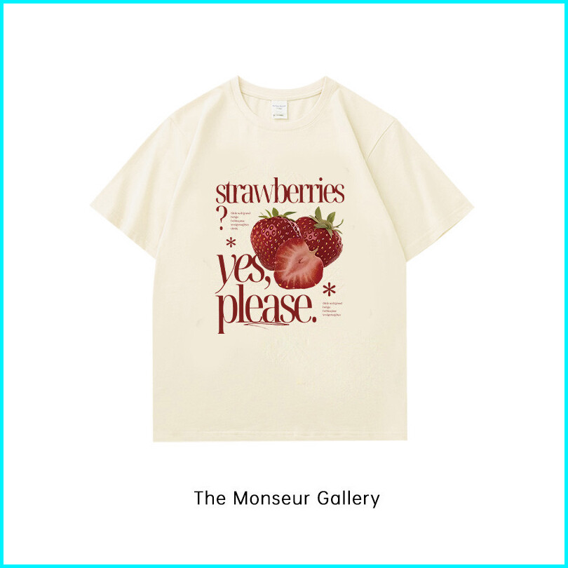 The Monseur Gallery Kaos Wanita Oversize Strawberry Letter Print Style Baju Atasan Wanita Terbaru Kaos Baju Cream