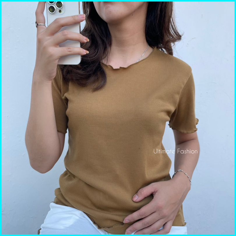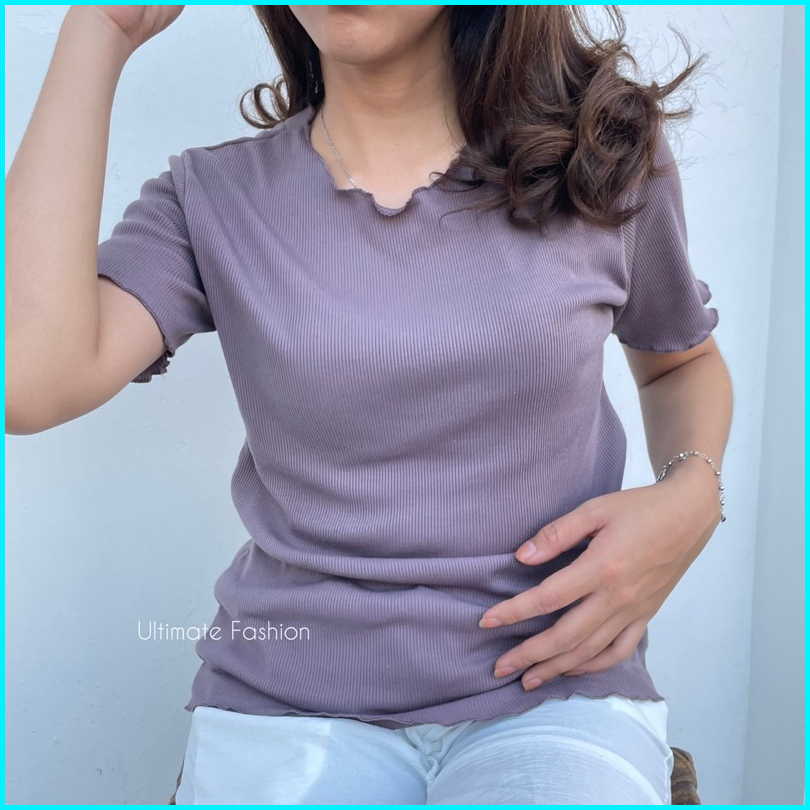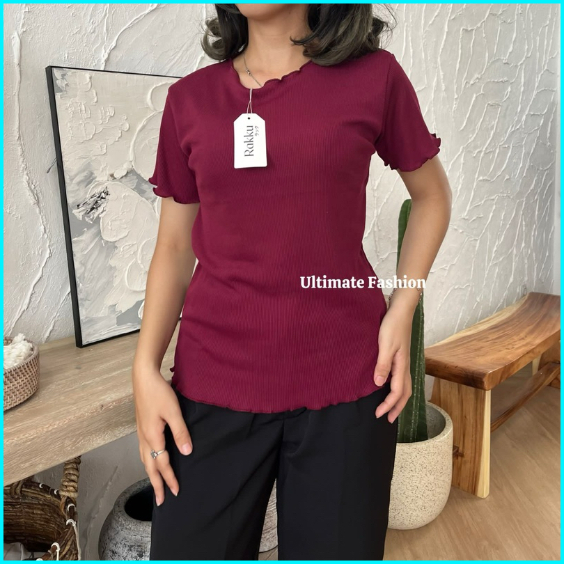 Basic Shirt Rib Knit Neci Kriwil - Kaos Rib Lengan Pendek Premium Inner Rakku