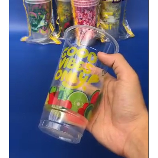 GROSIR 1 DUS Gelas Es Teh Kopi Buah INDONESIA Merah 22 oz Printing SEAL Batik Orange Juice Jus 22oz